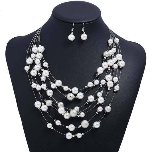 Multilayer pearl necklace pendant