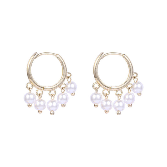 Multilayered Ring Earrings With Pearl Microzircon Earrings