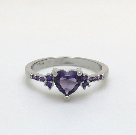 Natural Amethyst Zircon Silver Ring Fashion Wedding Heart Shaped Ring Jewelry Female
