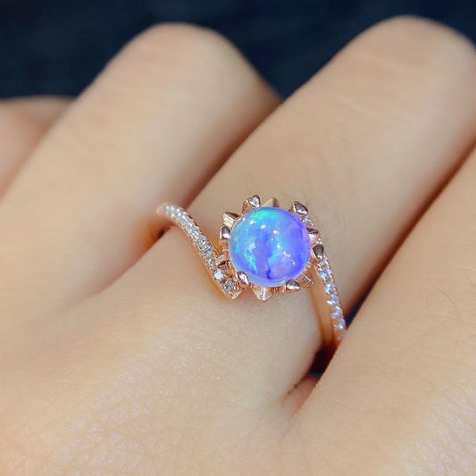 Natural Opal Ring Classic Simple Sparkling Fire Color Main Stone