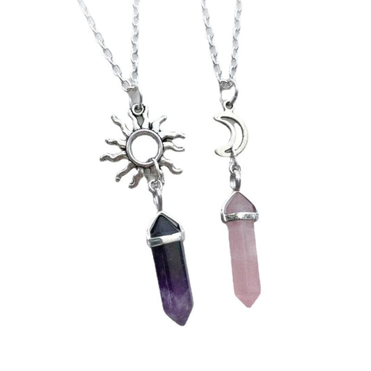 Natural Quartz Stone Crystal Hexagon Pillar Necklace
