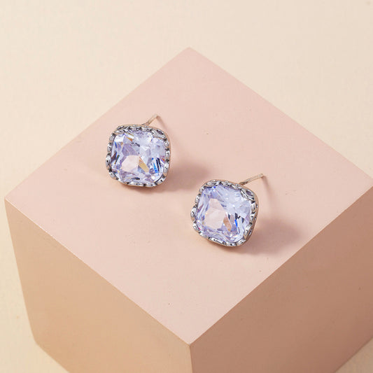 Personality Sparkling Bling Large Square Gemstone Zircon Earrings
