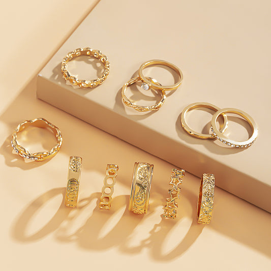 Retro Geometric Round Oval Gemstone 8 Piece Set Ring Joint Ring