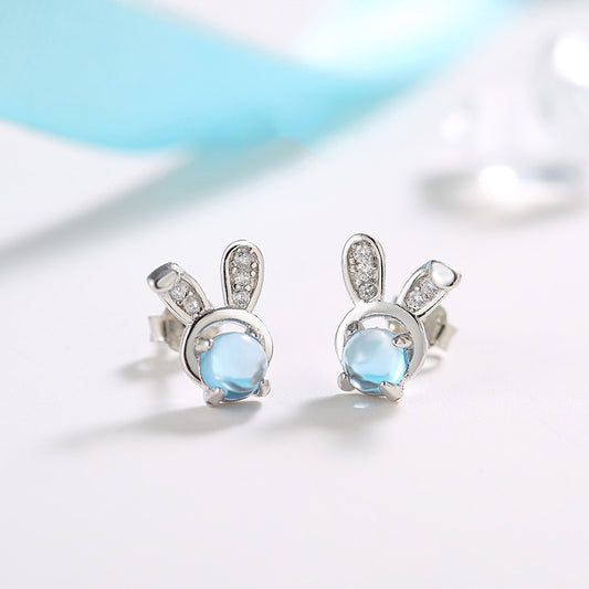 Rabbit Earrings Moonstone Earrings Female Pure Silver Earrings Do Not Need To Pick Up When Sleeping