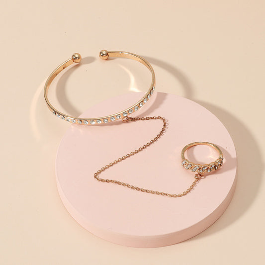 Retro Cold Wind Diamond Bangle Ring One-piece