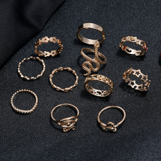 Rose Hollow Star Carved Vintage Ring Set