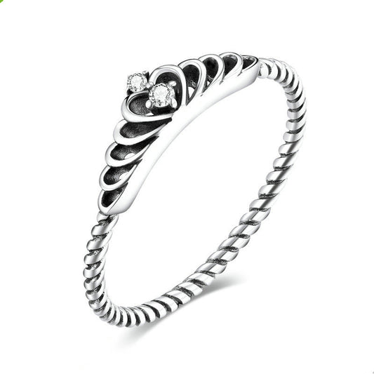 Shining Crown Ring Diamond Crown Personality S925 Silver Ring Female Jewelry