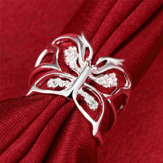 Silver Butterfly Zircon Ring