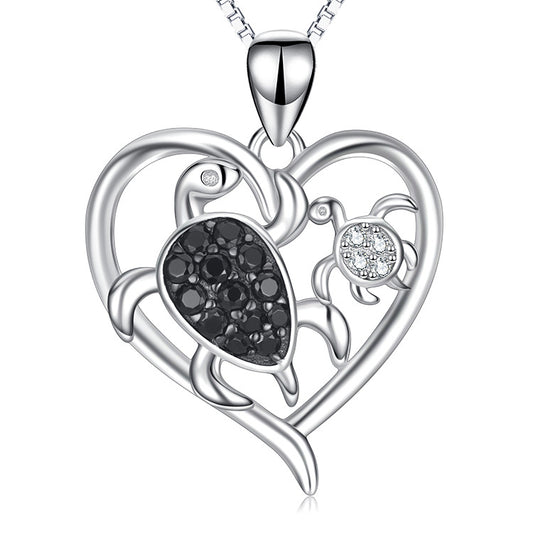 S925 Turtle Diamond Heart Necklace