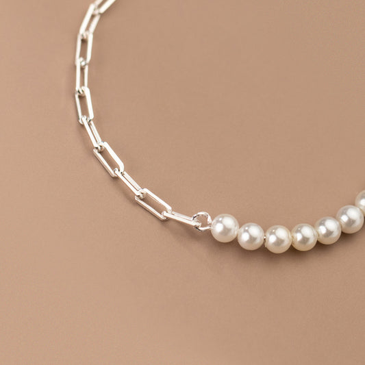 Silver Beads Synthetic Pearl Oval Cutout Bracelet