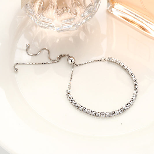 Sterling Silver Single Diamond AAA Zircon Bracelet