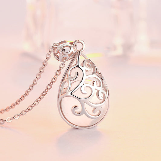 Sterling Silver Necklace Hollow Vintage Crystal Pendant