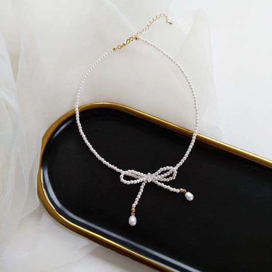 Sweet Pearl Necklace Personalized Bow Necklace