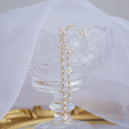 Super Sparkling Zircon Moon Tassel Earrings