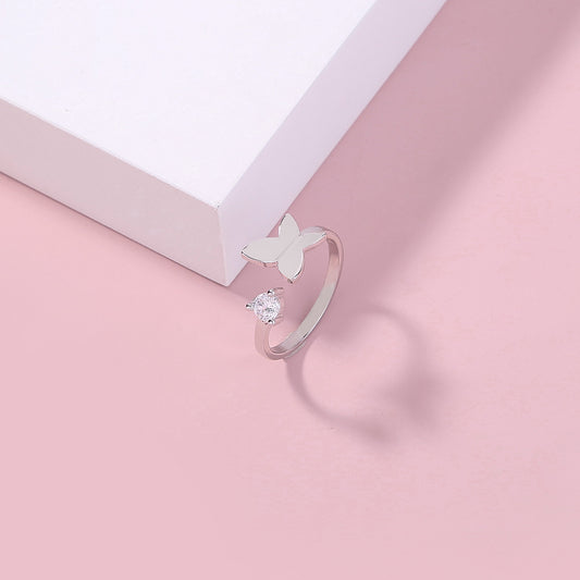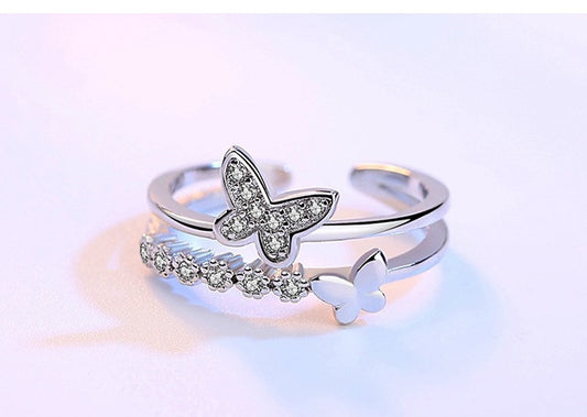 Butterfly Love Silver Ring Micro-inlaid Butterfly Zircon Ring Bracelet Tail Ring