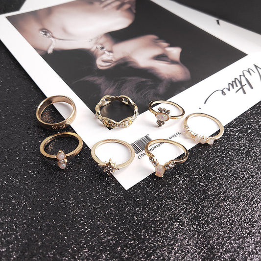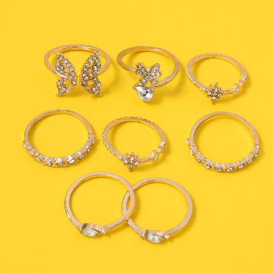 8 Piece Set Diamond Butterfly Flower Set Ring Women's Vintage Wedding Festival Crystal Ring