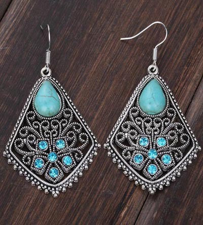 Ethnic Jewelry Vintage Earrings Silver Stone oscillates