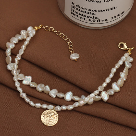 Embossed Coin Natural Freshwater Pearl Bracelet
