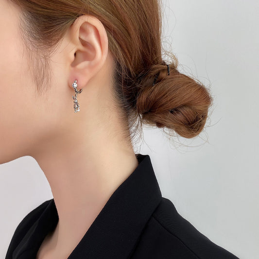 925 Sterling Silver Rabbit Earrings Asymmetrical Earrings Tassel Earrings
