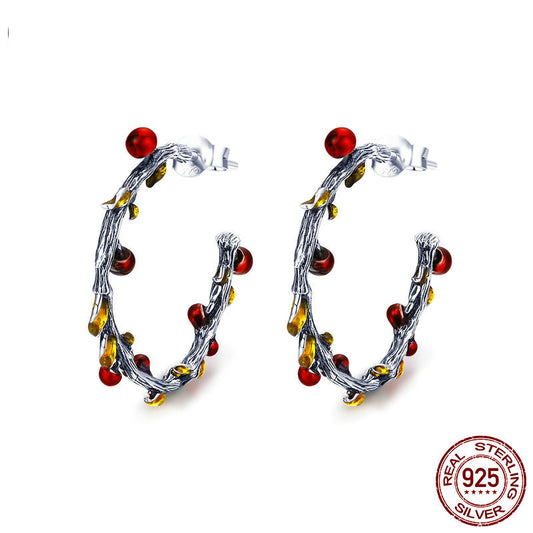 925 Sterling Silver Autumn Plant Withered Tree Leaves Hoop Earrings