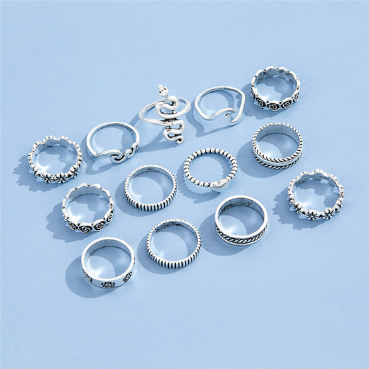 Flower Love Geometric Ring Joint Ring Thirteen Piece Set
