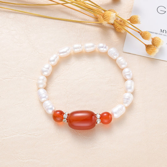 Freshwater Pearl Bracelet Simple Rice Bead Chalcedony Agate Bracelet