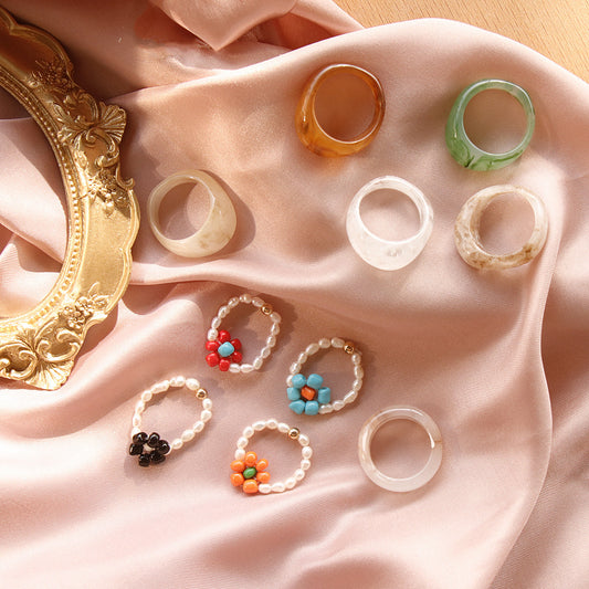 Freshwater Pearl Flower Ring Transparent Resin Round Tail Ring