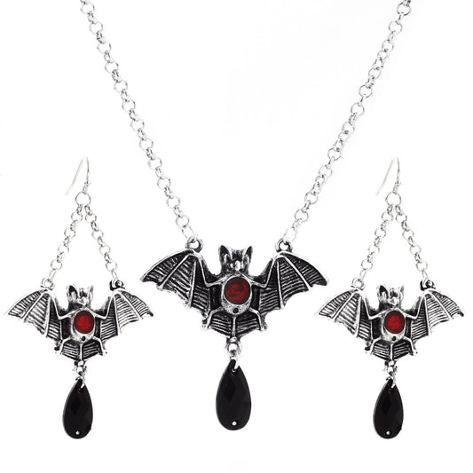 Gothic Halloween Bat Pentagram Moon Charm Earrings