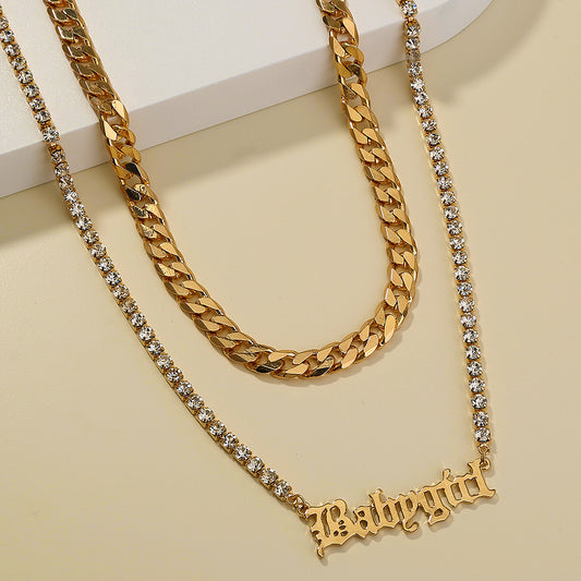 Gothic Lettering Cuban Chain Multiple Necklaces