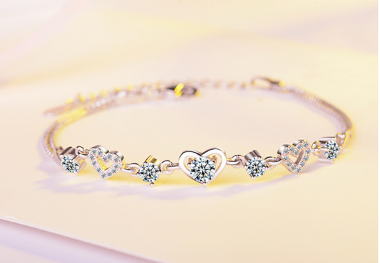 Heart Shaped Love Bracelet Diamond Double Heart Bracelet
