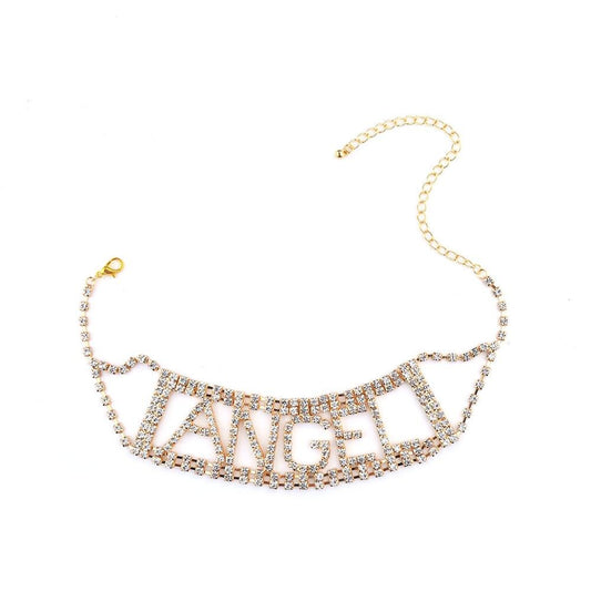 Hollow letter full diamond necklace ANGEL