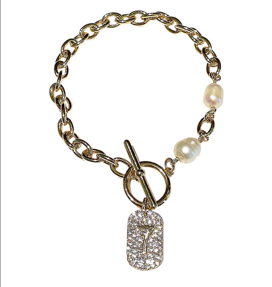 Letter 7 Chain Punk Heavy Metal Bracelet Freshwater Pearl Creative Bracelet