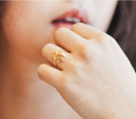LNRRABC Woman Jewelry Fashion Simple Design Leaf Ring Personality Female Flower Rings Wedding Rings for Women