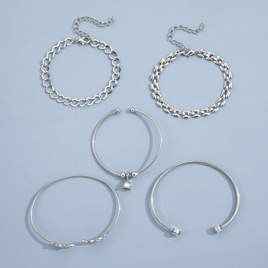 Leaf Point Diamond Beaded Love Rhinestone Bracelet