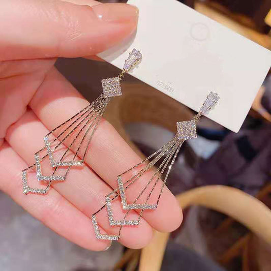 Long Crystal Earrings Diamond Bridal Wedding Long Earrings