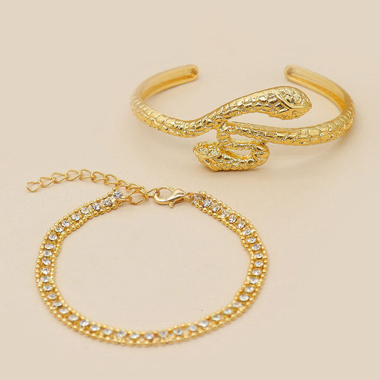 Snake-shaped Bracelet, Diamond-set Chain Bracelet Set Of 2