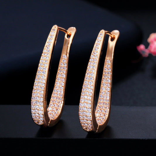 Zirconia Stone White Gold Luxury Big Hoop Earrings