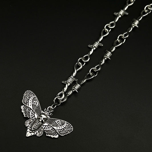 Thorns Hip Hop Gothic Skull Moth Pendant Necklace