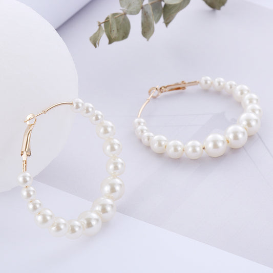 Women Elegant White Pearls Round Hoop Earrings Girl
