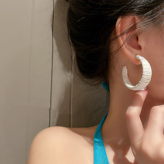 Ladies Silver Needle Niche Temperament Geometric Hoop Earrings