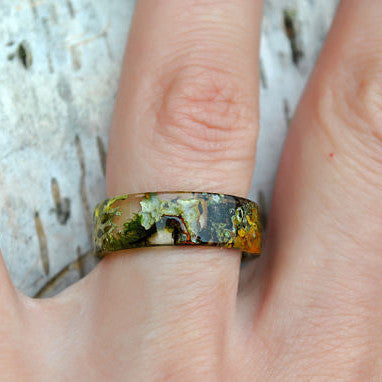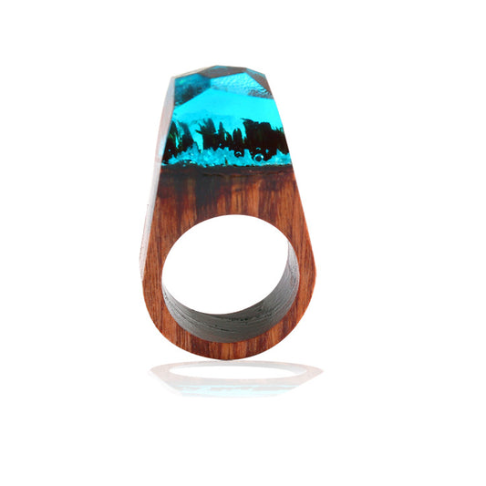 New Resin Wood Snowscape Starry Sky Aurora Personality Ring Fluorescent Secret Wood For Women Men Unusual Decoration Jewelry