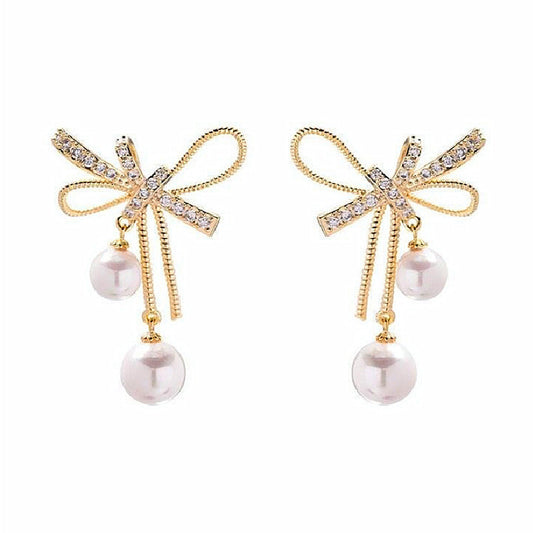 Bowknot Pearl Earrings Temperament High-end Earrings