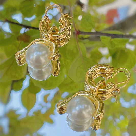 Handmade Pearl Woven Scalloped Pearl Stud Earrings