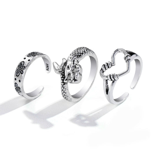 Creative Retro Butterfly 3-piece Set Joint Ring Set