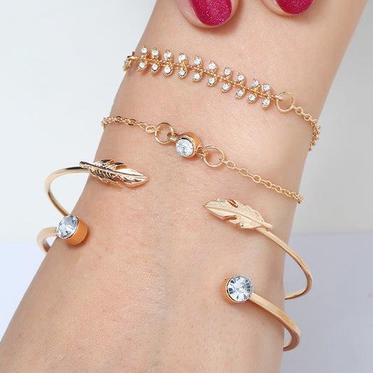 Women's Alloy Diamond Leaf Bangle Bracelet