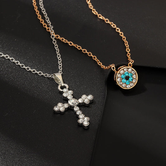 Cross Necklace Vintage Pop Color Diamond Pendant