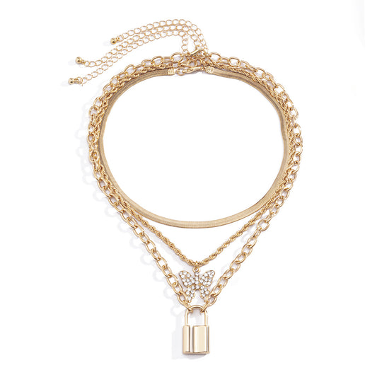 All-match Diamond-studded Butterfly Lock Necklace