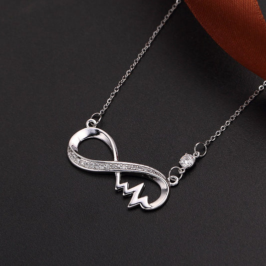 Copper plated platinum and diamond electrocardiogram necklace