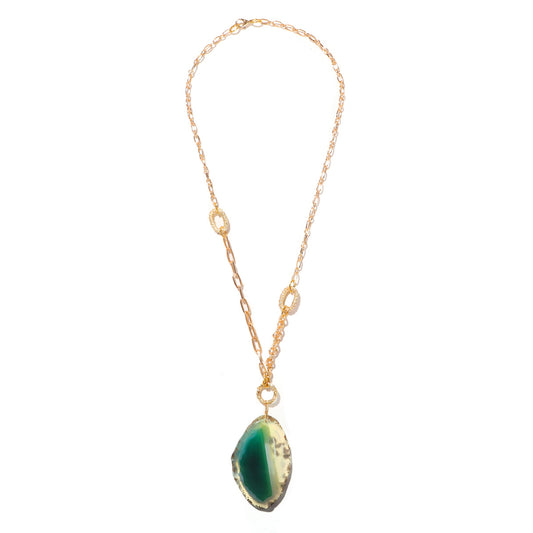 Natural Stone Agate Crystal Hexagonal Pillar Necklace
