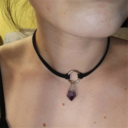 Crystal Rough Pendant Micro Inlaid Necklace Shield Jewelry